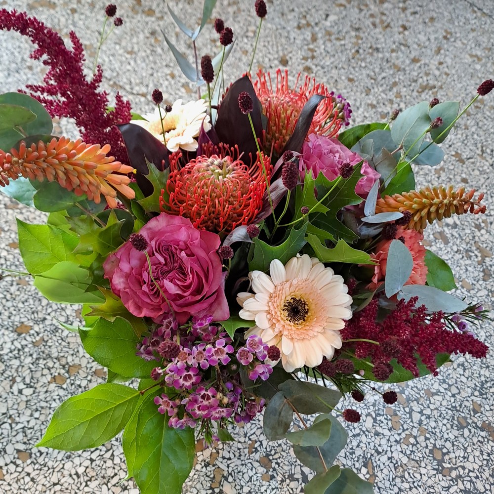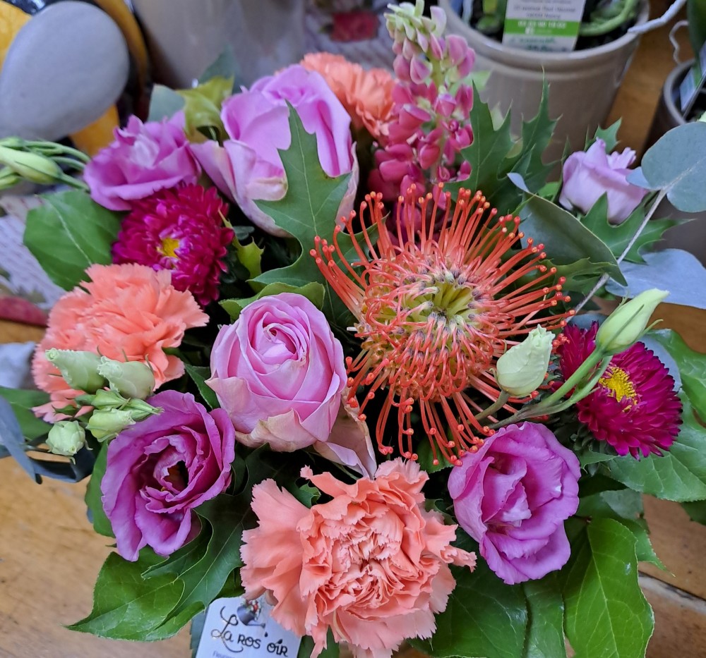 Un bouquet qui ne passe pas inaperçu : entre le vieux rose tendre, le fuchsia flamboyant et l’orange vitaminé, c’est un vrai cocktail relevé. Comme un plat qui réchauffe le cœur, il apporte saveur et couleur aux journées qui fraîchissent. Bref, un mélange audacieux qui met du peps là où il passe… sans avoir besoin de piment supplémentaire !