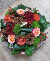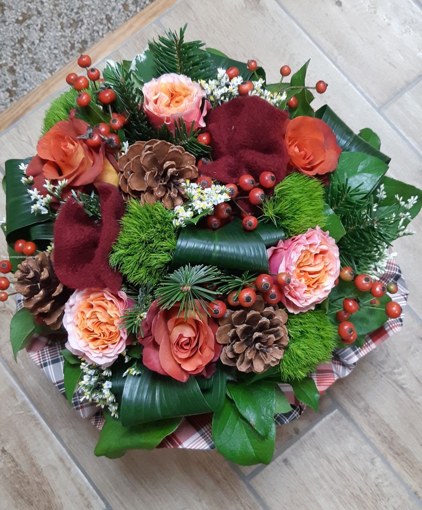 Un vrai concentré de chaleur au cœur de la saison froide. Ce bouquet mêle le parfum du sapin, les notes boisées des pommes de pin et la douceur réconfortante de la feutrine. Les fleurs orangées y mettent une flamme joyeuse, comme un feu de cheminée qui crépite après une balade givrée.
