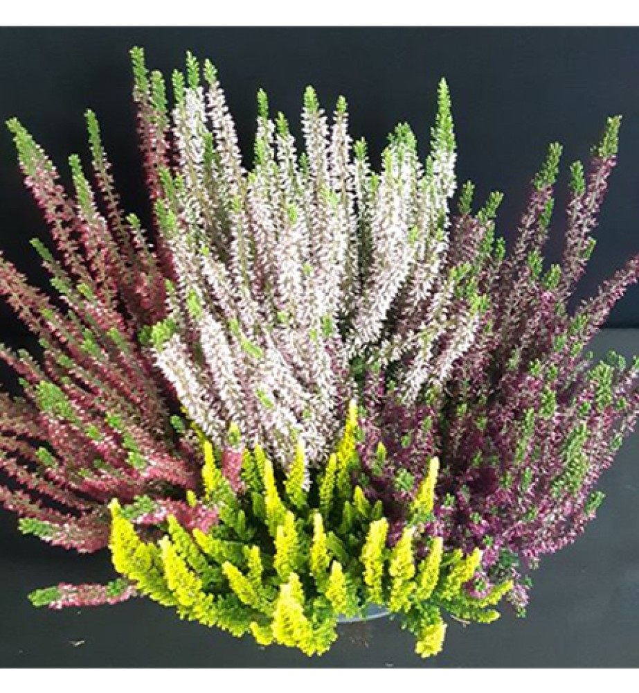 Déclinée dans des teintes de blanc, vert, rose tendre ou rose soutenu, cette coupe de callunes apporte une touche végétale colorée, sobre et durable au cimetière. Idéales pour l’automne, les callunes fleurissent longtemps — jusqu’au cœur de l’hiver — et résistent très bien au froid, même aux premières gelées. Sans entretien particulier, elles gardent une belle tenue en extérieur pendant toute la saison.